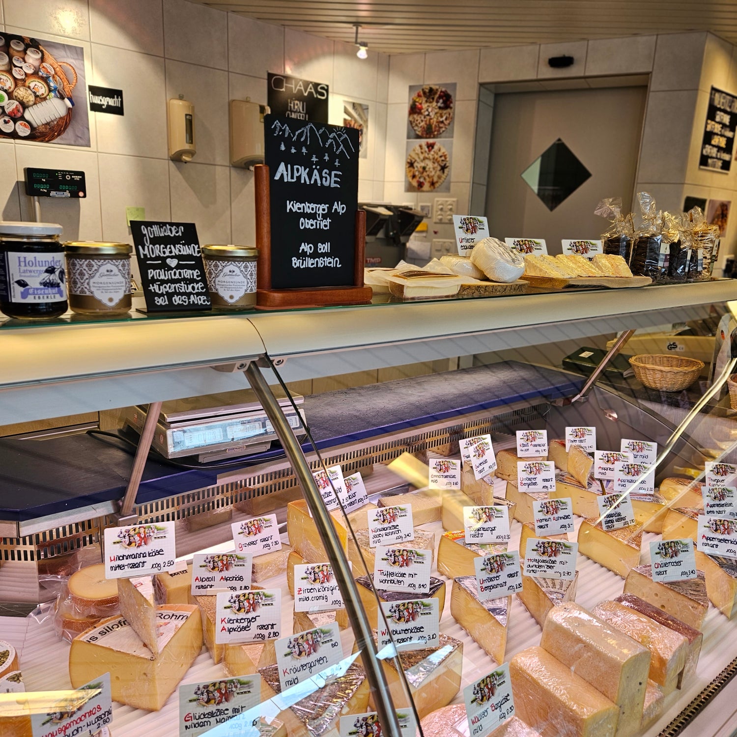 Die frischen Produkte aus hiesiger Milch gibt es auch zum Mitnehmen. In unserem Verkaufsladen finden Sie Bestes aus der Molkerei, Spezialitäten aus dem Appenzellerland, so auch regionale Käse, frisches Gemüse sowie verschiedene Geschenkideen.